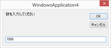 1000を入力してOKをクリックすると、このウインドウはいったん閉じて、次の新しいウインドウが表示される。(Form1はやはりそのままだ)。
