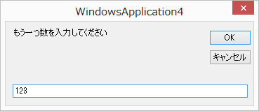 123と入力してOKをクリックする。すると、Form1に以下のように表示される。